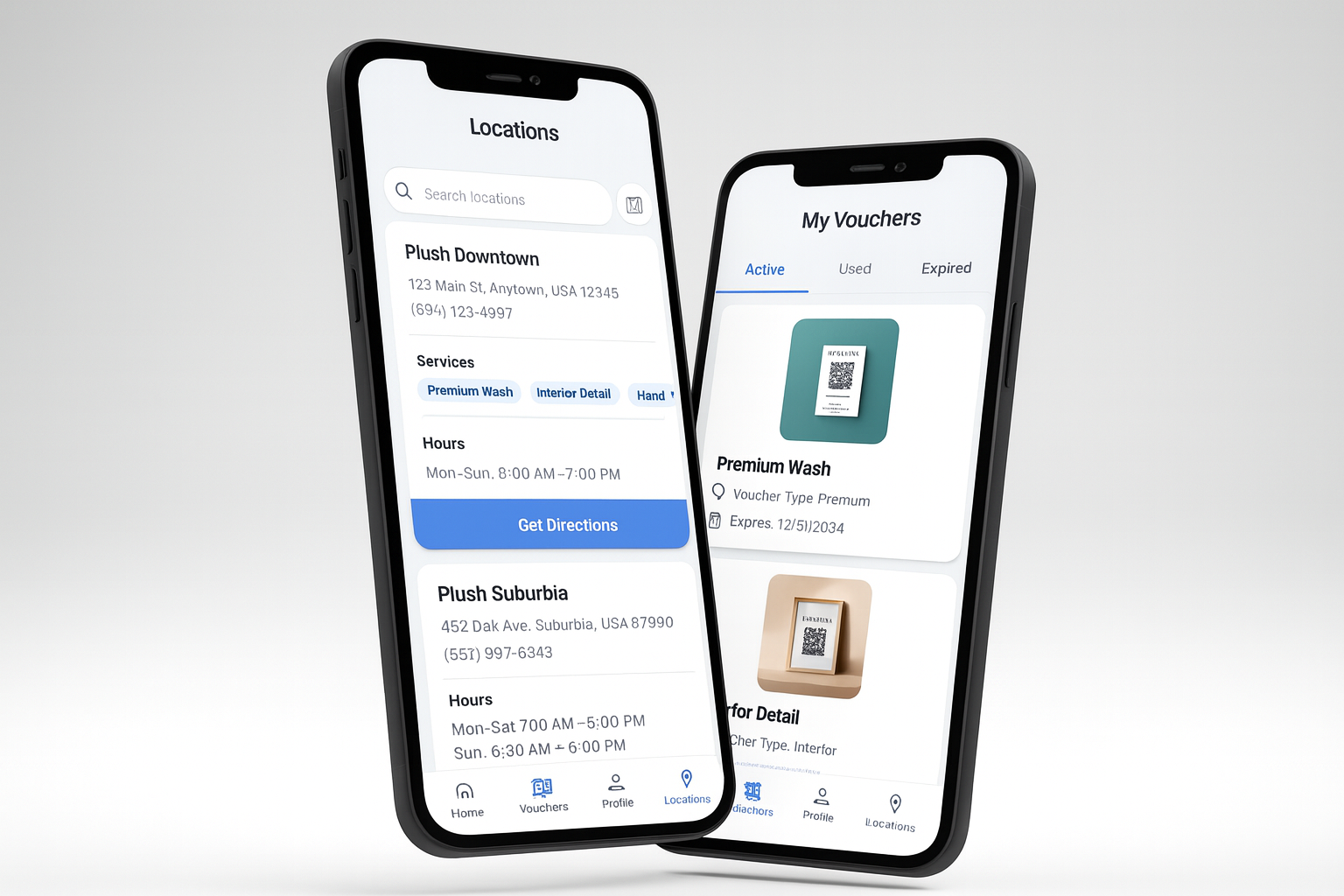 Scoping and design of a new system with a customer loyalty programme, ready for collection alerts, on the spot voucher creation, and automatic vouchers after ten washes. Secure vehicle pickup using OTP.